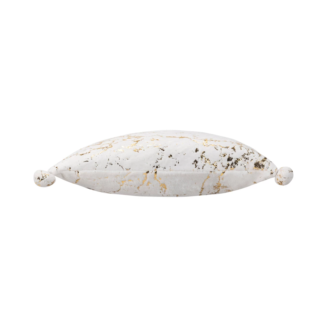 Faux fur pillow with gold printing and pom pom trim on the edges