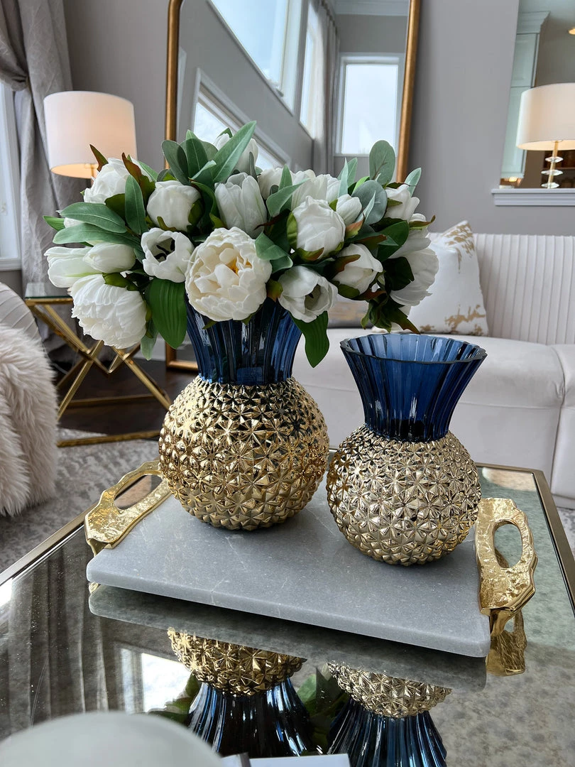 Description: This mixed floral bundle features real-touch white peonies, tulips and eucalyptus. It is a very fresh and clean look and is perfect to style a bundle or 2 in your vase!