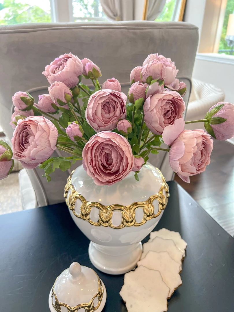 Inspire Me! Home Decor White Ceramic Vase With Stunning Gold Floral Detailed Center