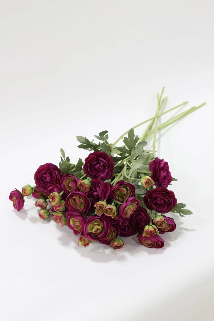 Description: Looking to add a pop of color to your home? These breathtaking deep purple ranunculus stems are a great way to add a dramatic touch!