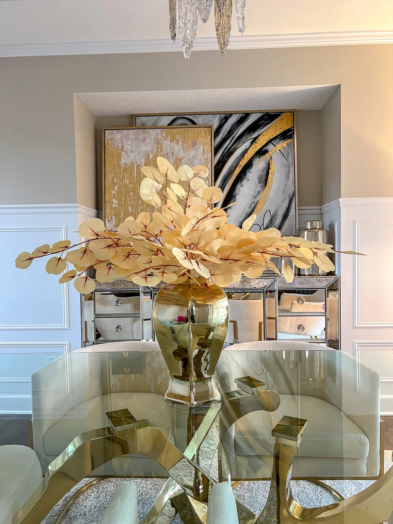 Description: This faux eucalyptus stem is a perfect addition to your favorite vase! Mix with other florals or bundle them as is!