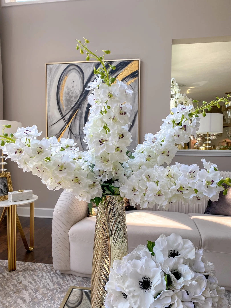 Description: This white delphinium stem is a perfect floral for an elegant room!