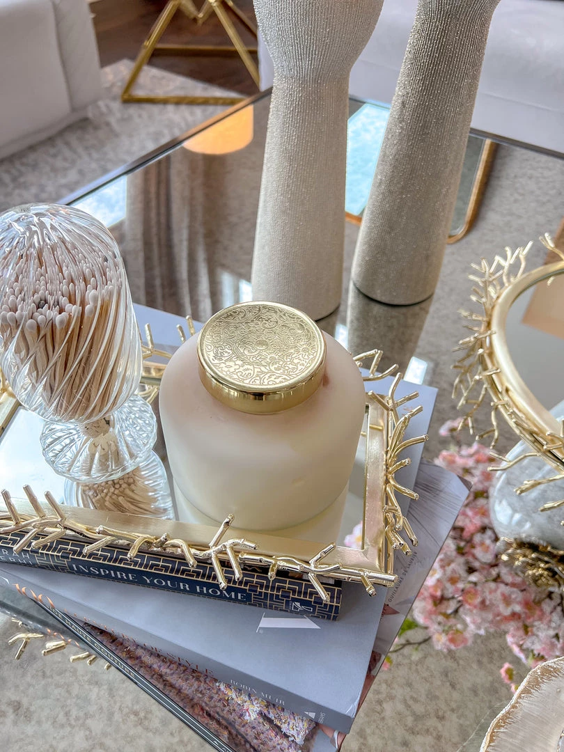 Description: This is a gorgeous frosted candle with a gold decorative detailed lid. The scent is French Vanilla.
