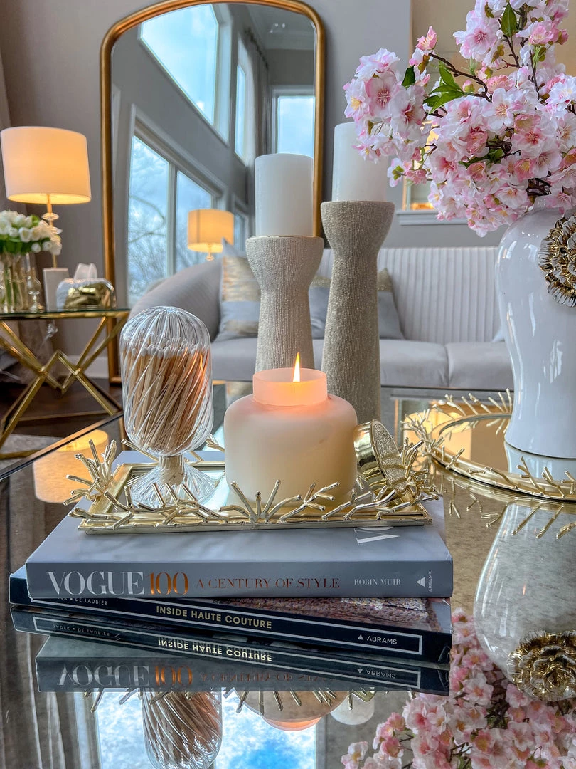 Inspire Me! Home Decor Rectangular Marble Tray With Cherry Blossom Details