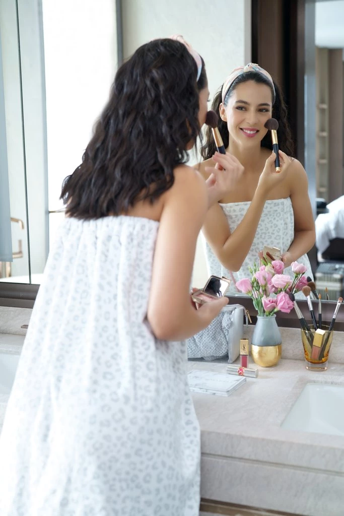 Description: This beautiful wearable towel is a great bathroom accessory! The soft grey leopard print is accented with a pink trim to great a fun look! This towel features a velcro closure to it can stay secure!