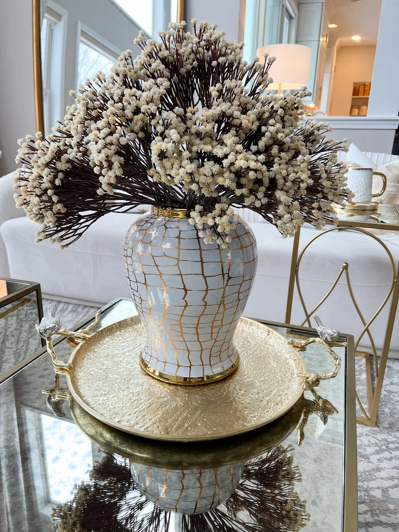 Inspire Me! Home Decor Gold Branch Centerpiece With 2 Glass Crackled Bowls