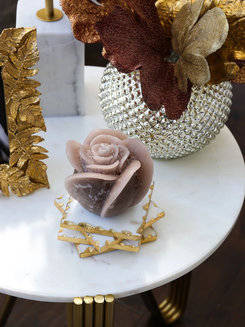 Description: Must-have alert! These stunning rose candles are beautifully crafted, where the entire candle takes on the delicate shape of a beautiful rose, with the wick centered in the beautiful bloom! Available in ivory, beige opaque, black, and blush.