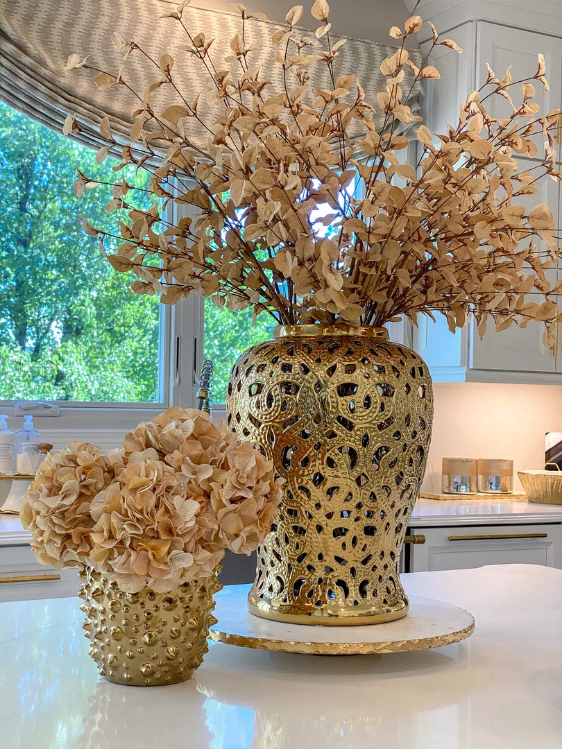 Inspire Me! Home Decor White Ceramic Vase With Stunning Gold Floral Detailed Center