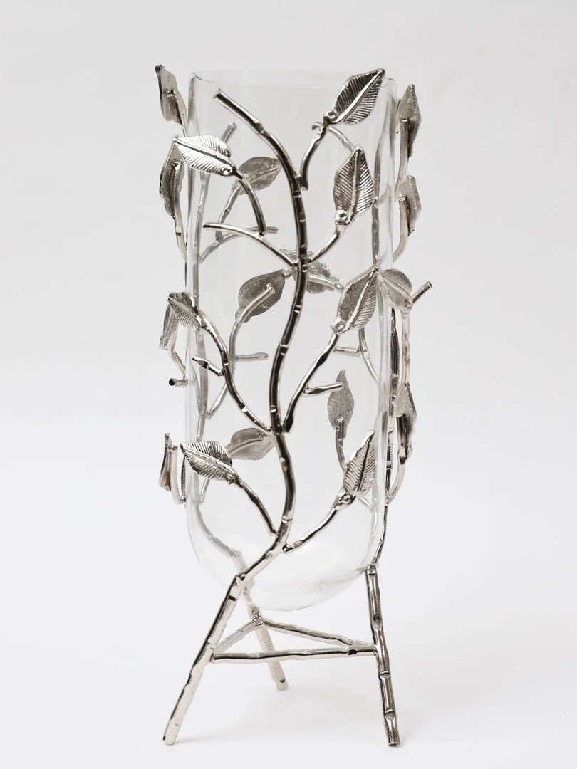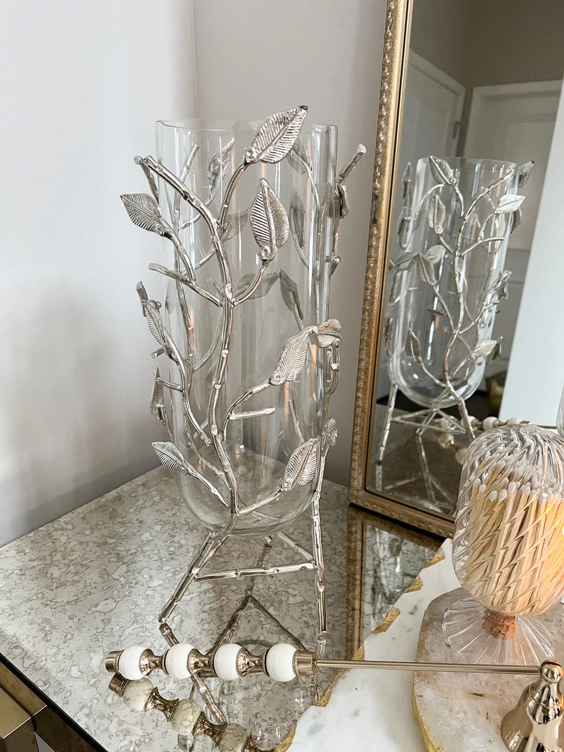 Description: This stunning vase features a clear glass vase and an intricate metal base! This vase will hold your favorite faux florals in style. Comes in Gold and Silver.