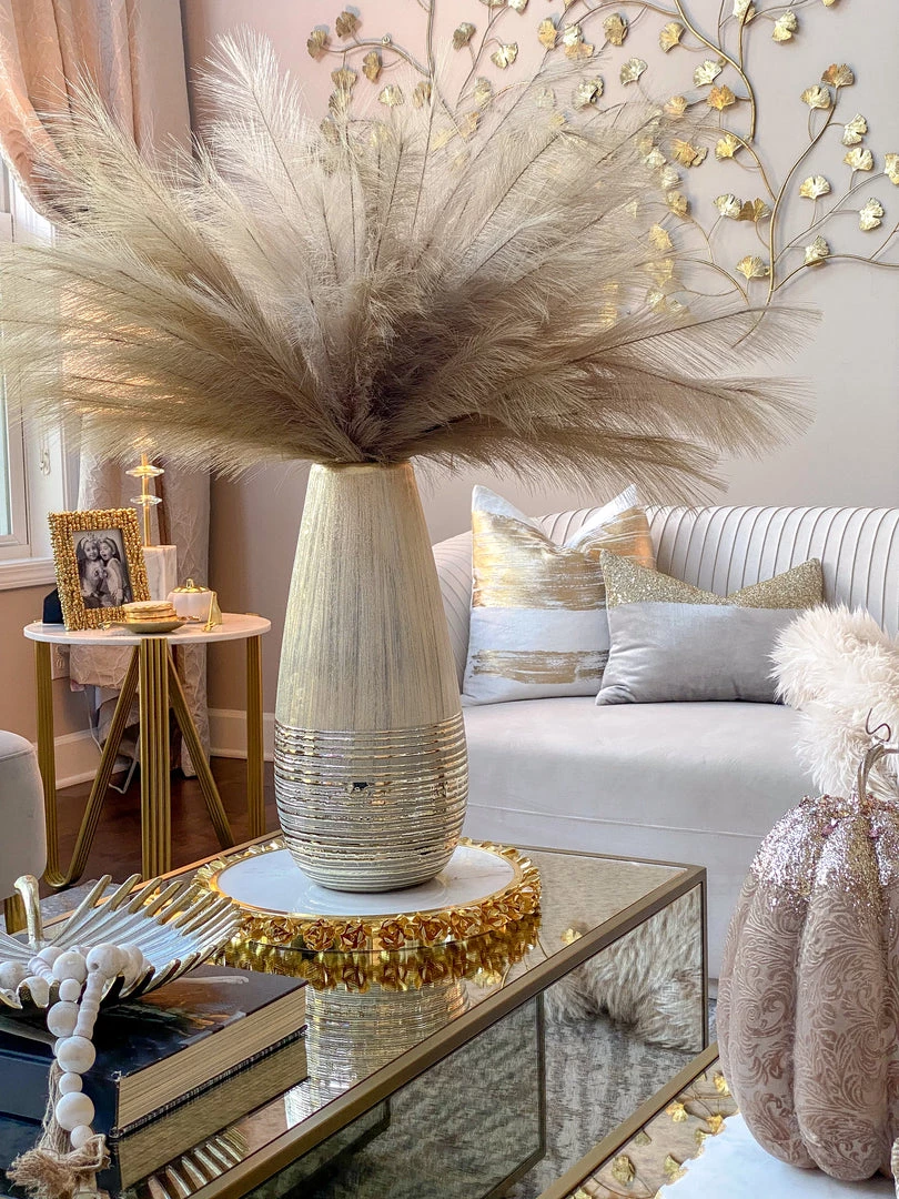 Description: This stunning vase will be a beautiful statement piece in your home! The bottom features stands of glossy finish while the rest is a speckled textured finished to create a unique and captivating design! Perfect for any season, this is a very substantial piece.