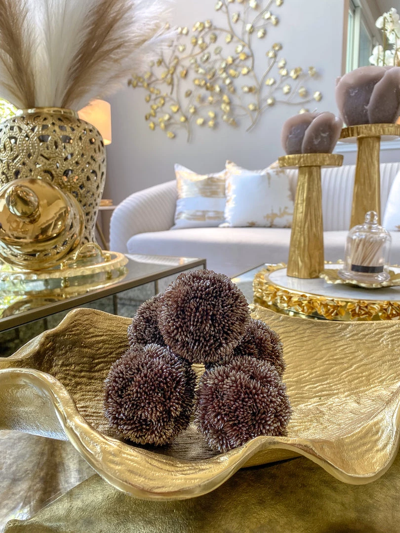 Description: These stunning metallic floral fillers will make the perfect decor for fall vases and bowls! Available in gold, silver, copper, and burgundy. Sold separately.