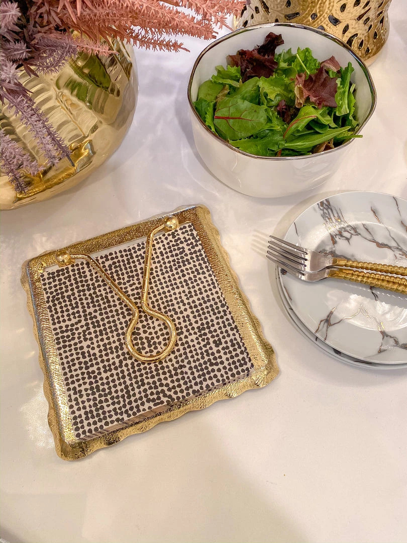 Inspire Me! Home Decor Round Marble Tray With Gold Edge And Metal Details