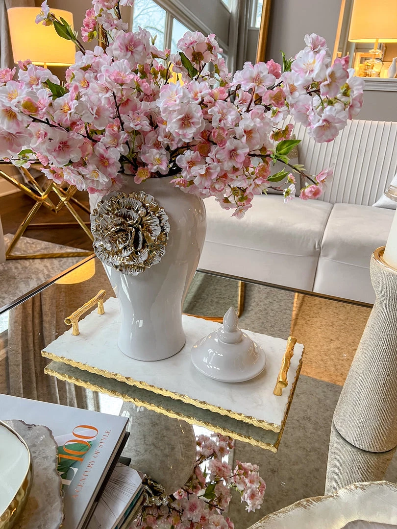 Inspire Me! Home Decor Large Rectangular Marble Tray With Cherry Blossom Details