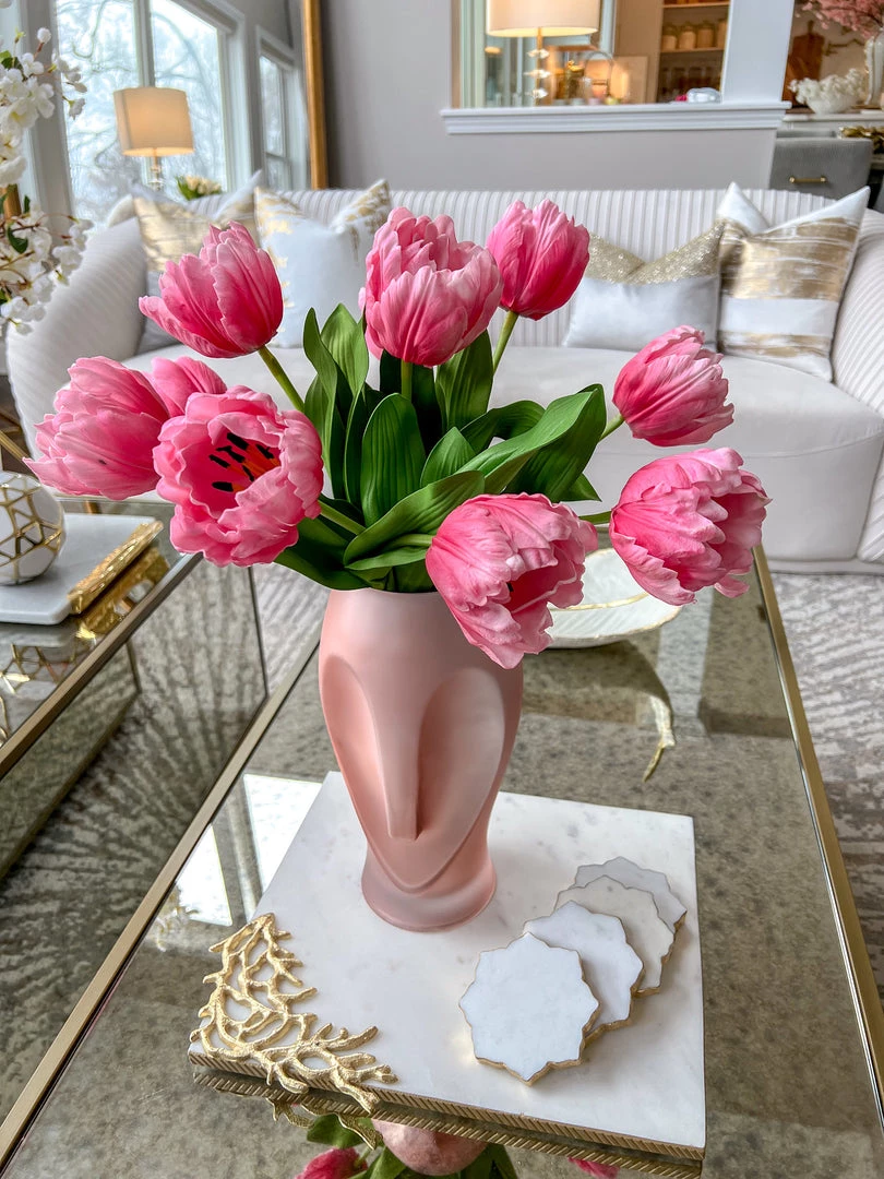 Description: This pink real touch tulip is perfect for spring! Grab a bundle of them to style in your favorite vase.