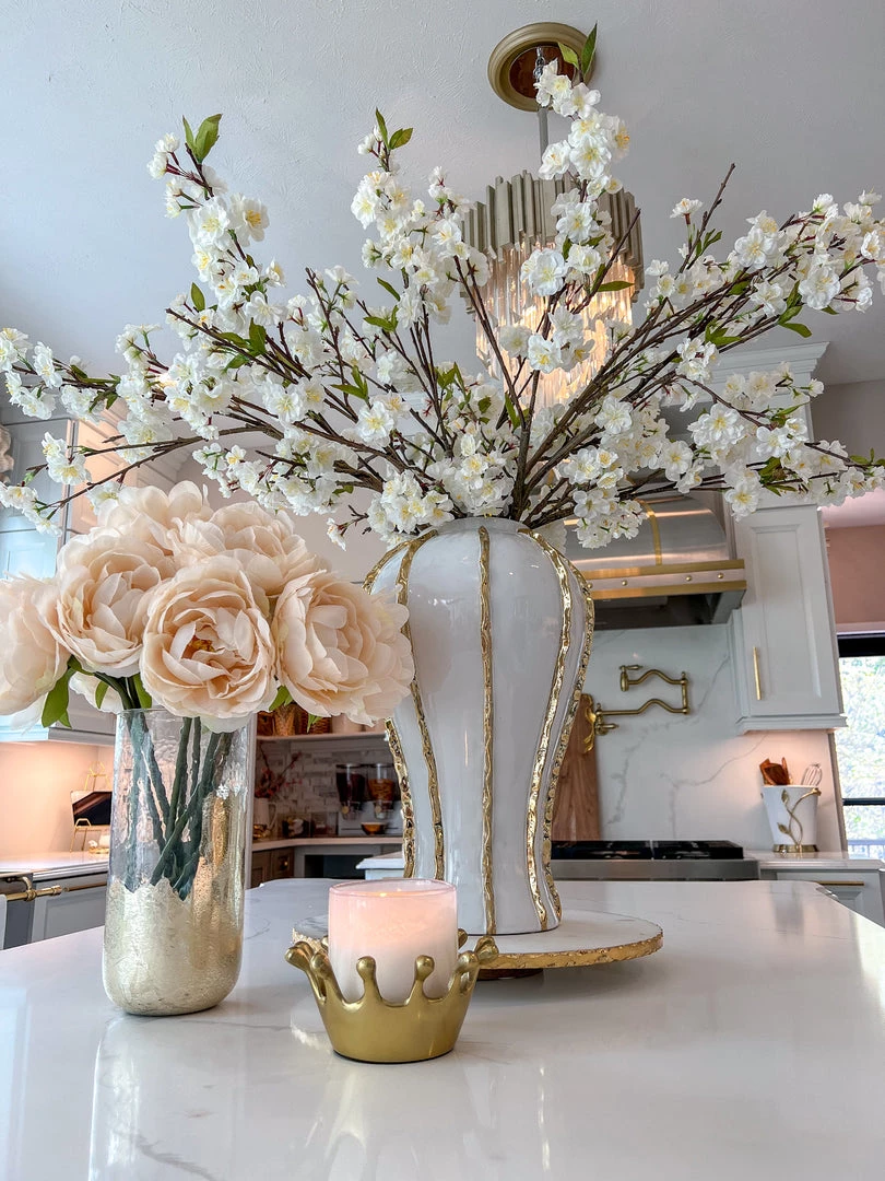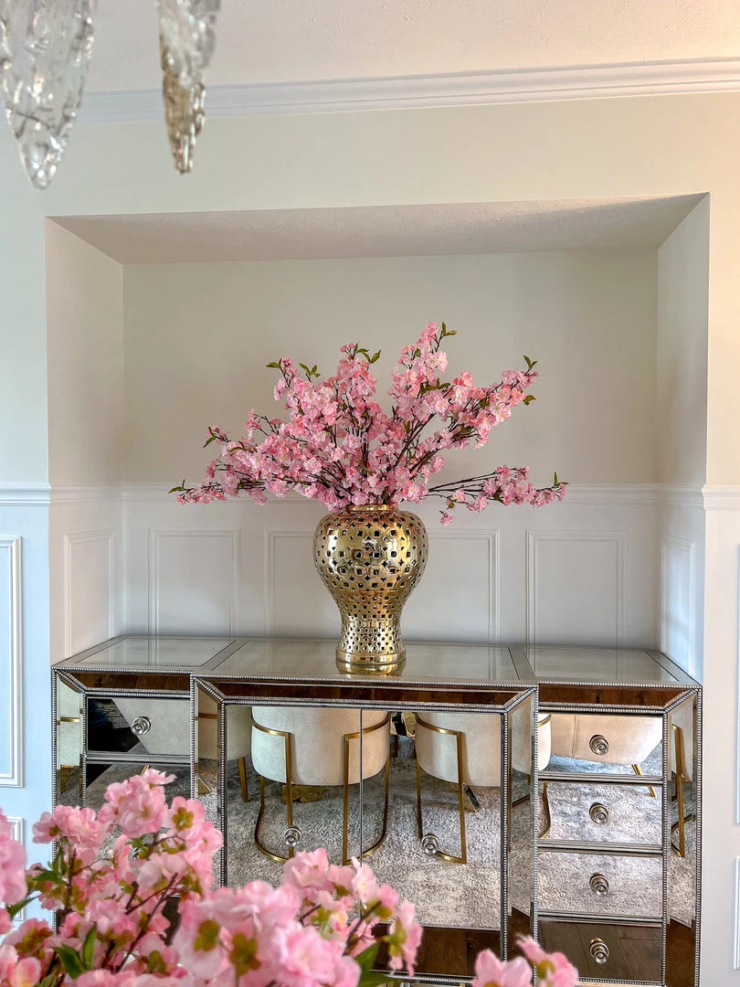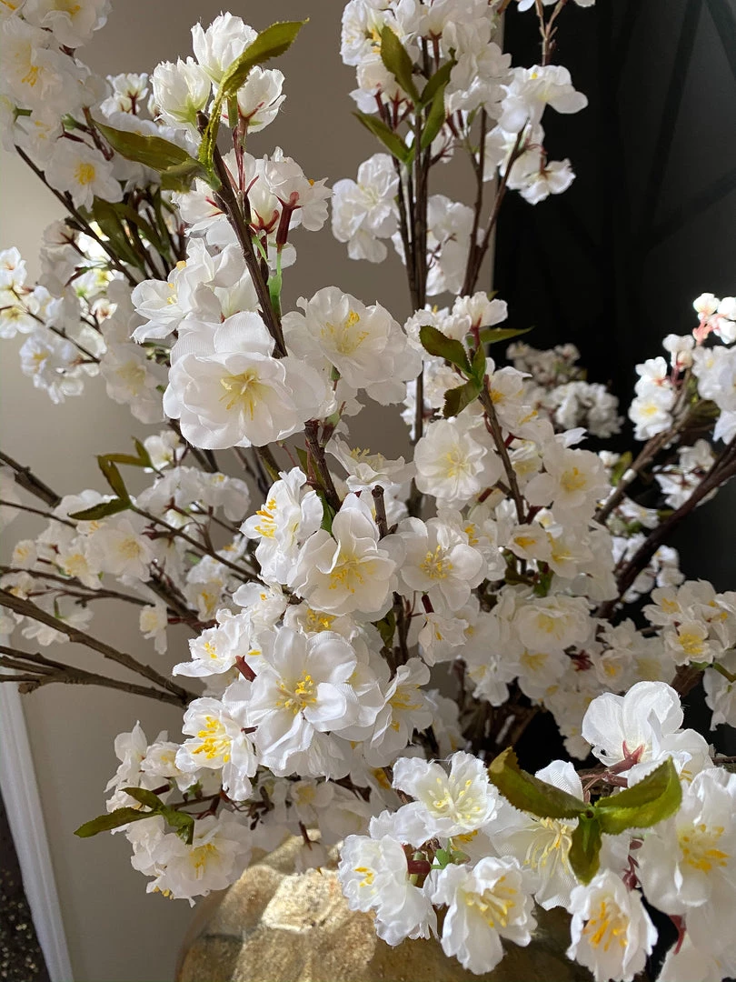 This cherry blossom stem is a very substantial piece. This stem is perfect for tall vases to make a big and bright statement in any room.