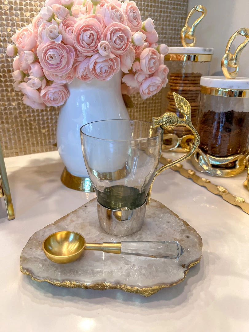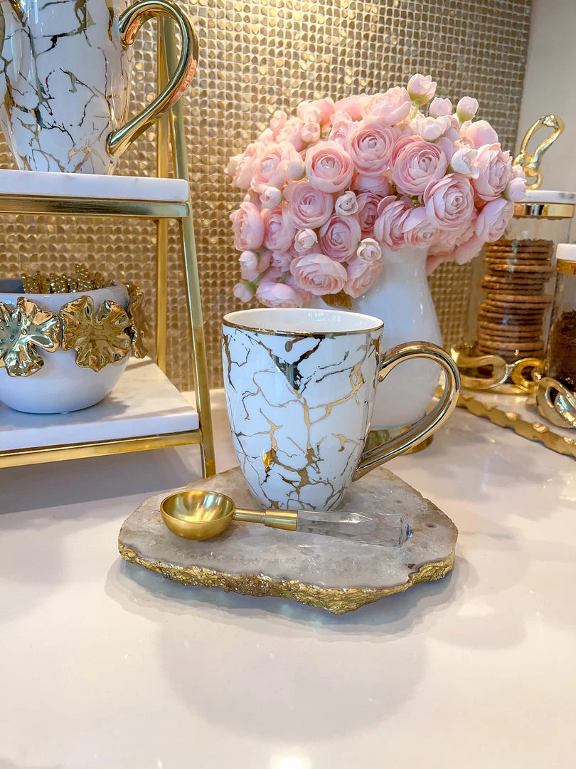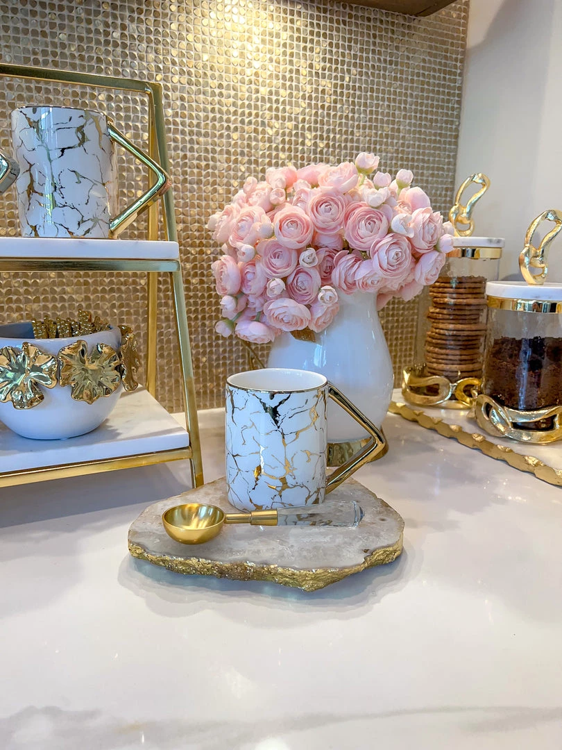 Inspire Me! Home Decor Round Marble Tray With Gold Edge And Metal Details