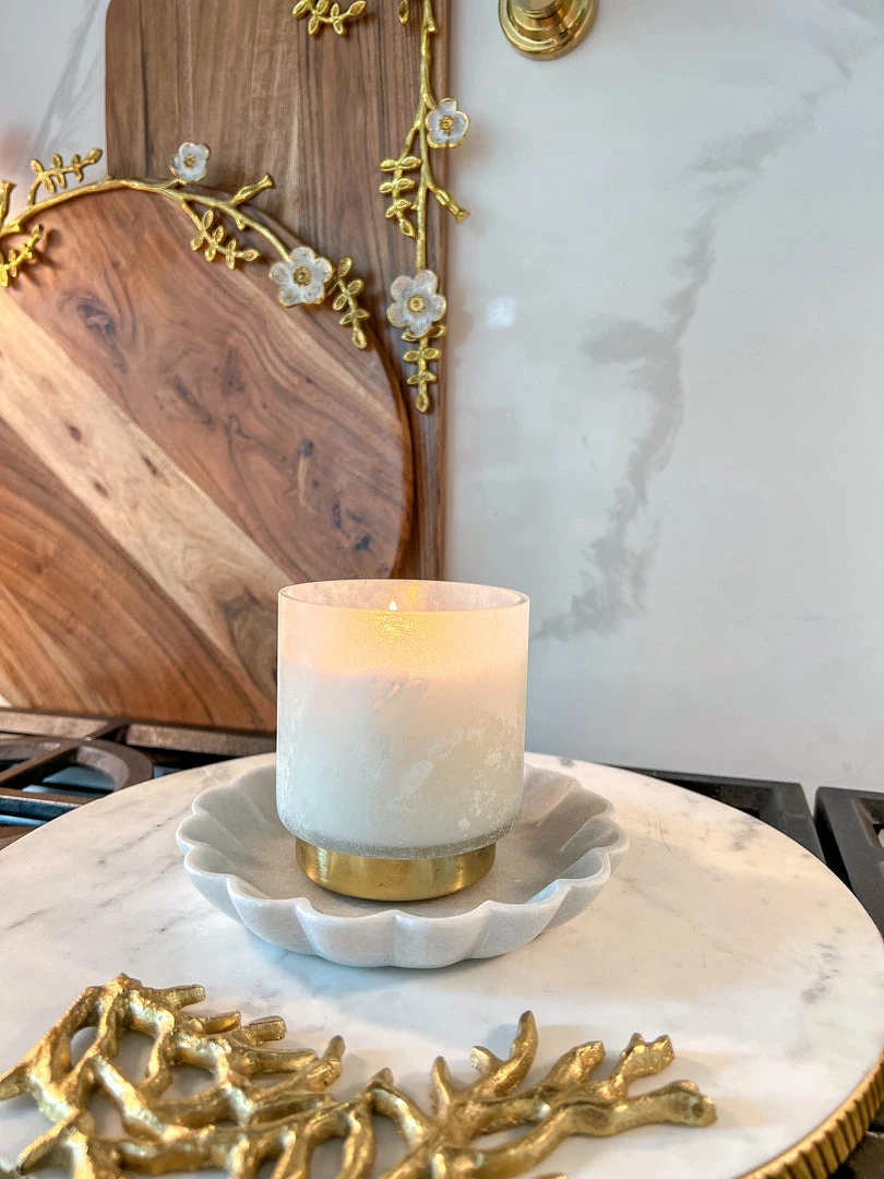 Description: This marble flower shaped dish can be used as a spoon rest or to place your jewelry and rings on your nightstand. This would make a beautiful candle trivet as well.