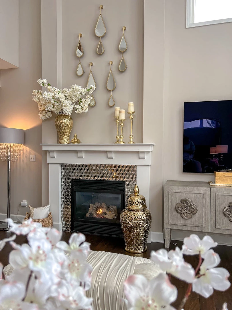 Inspire Me! Home Decor White Ceramic Candle Holder With Gold Elegant Details (2 Sizes)