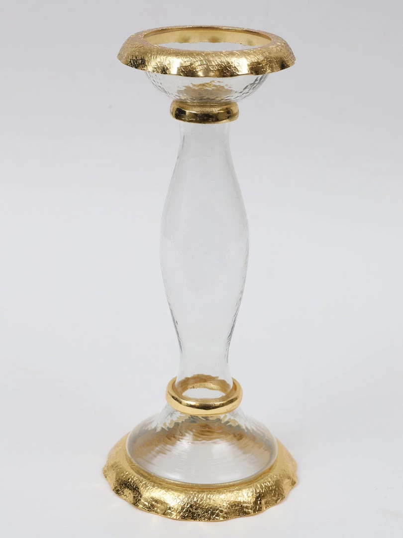 Description: These stunning glass and gold candle holders have a gold ripple edge border and will make a beautiful addition to your home decor!