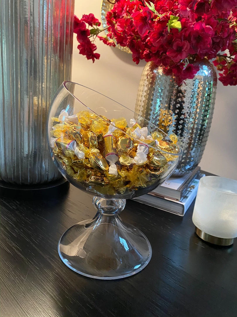 This unique glass globe jar is a very multi-purpose piece. You can use it as a vase, a planter, a server, or just on its own! Place your favorite snacks in it, or display your bathroom essentials in style!