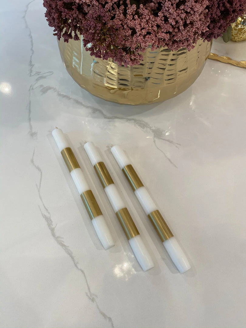 These metallic band candle sticks are a must-have for this holiday season! They are a stunning fit for any candle stick holder and the gold finish ties back to your gold decor.