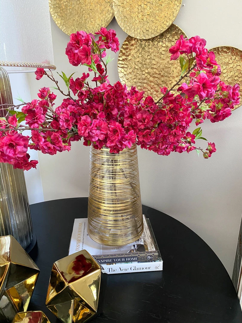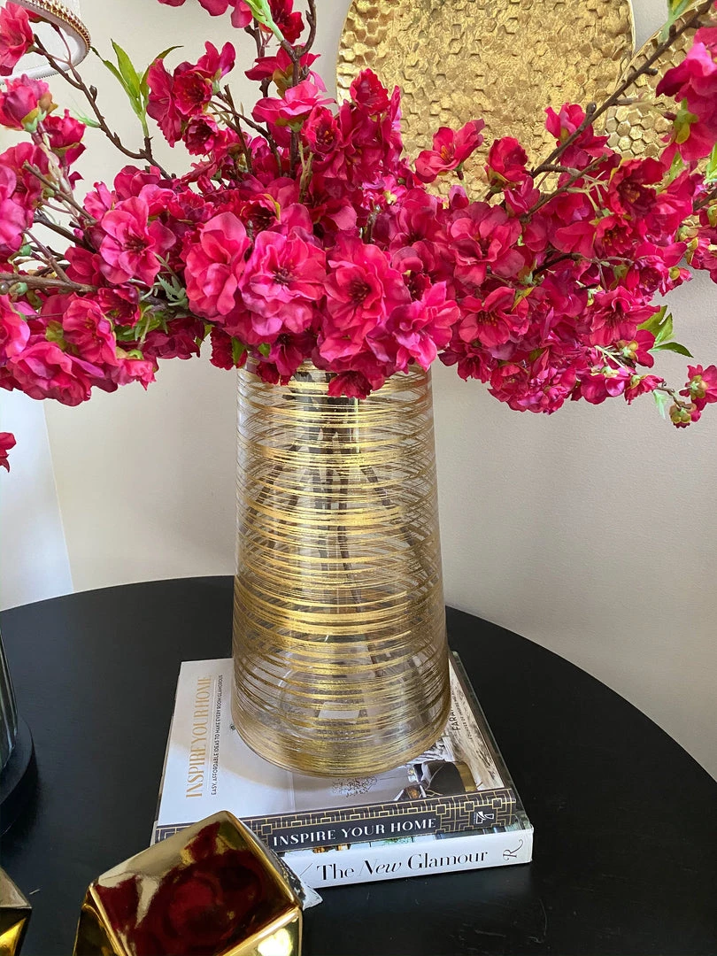 This gold vase adds texture and interest to your vignette while displaying your beautiful real or faux florals.