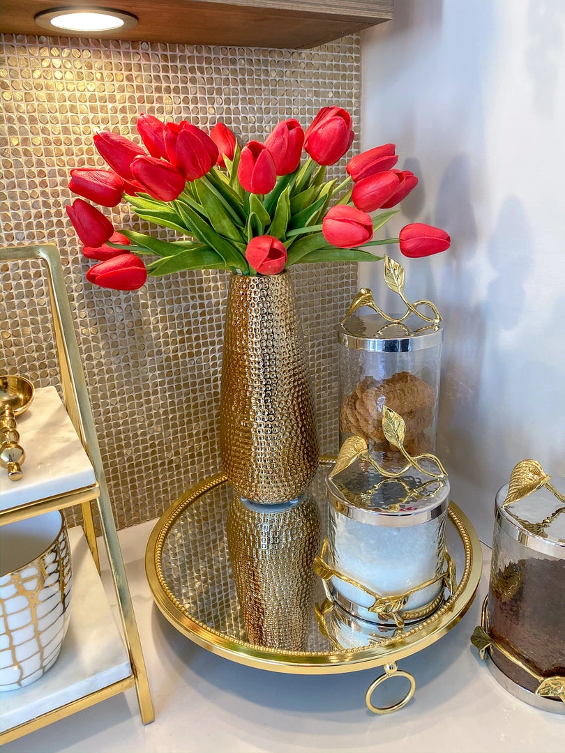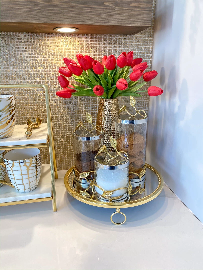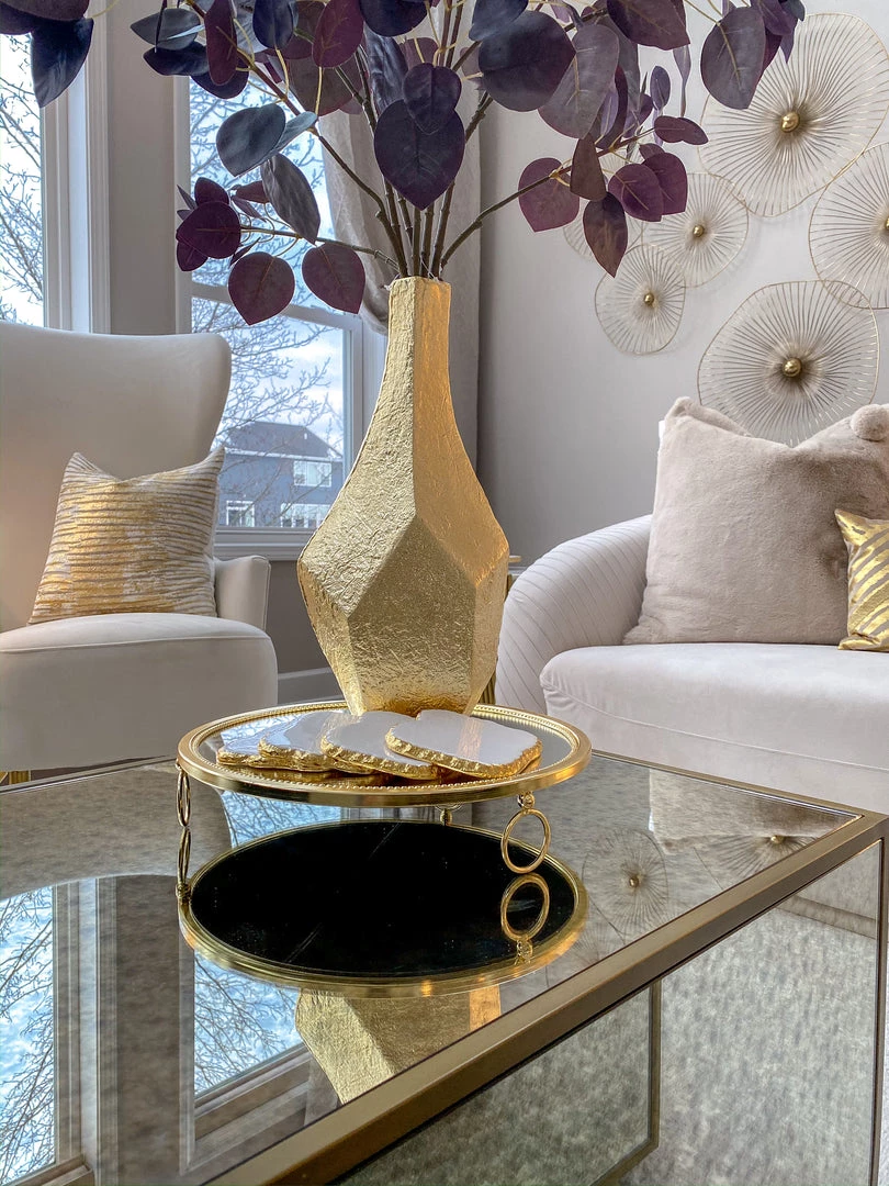 Description: This tray is a must have item! The design is simple but unique, sleek, and sophisticated. Available in silver and gold, this tray is a universal piece.