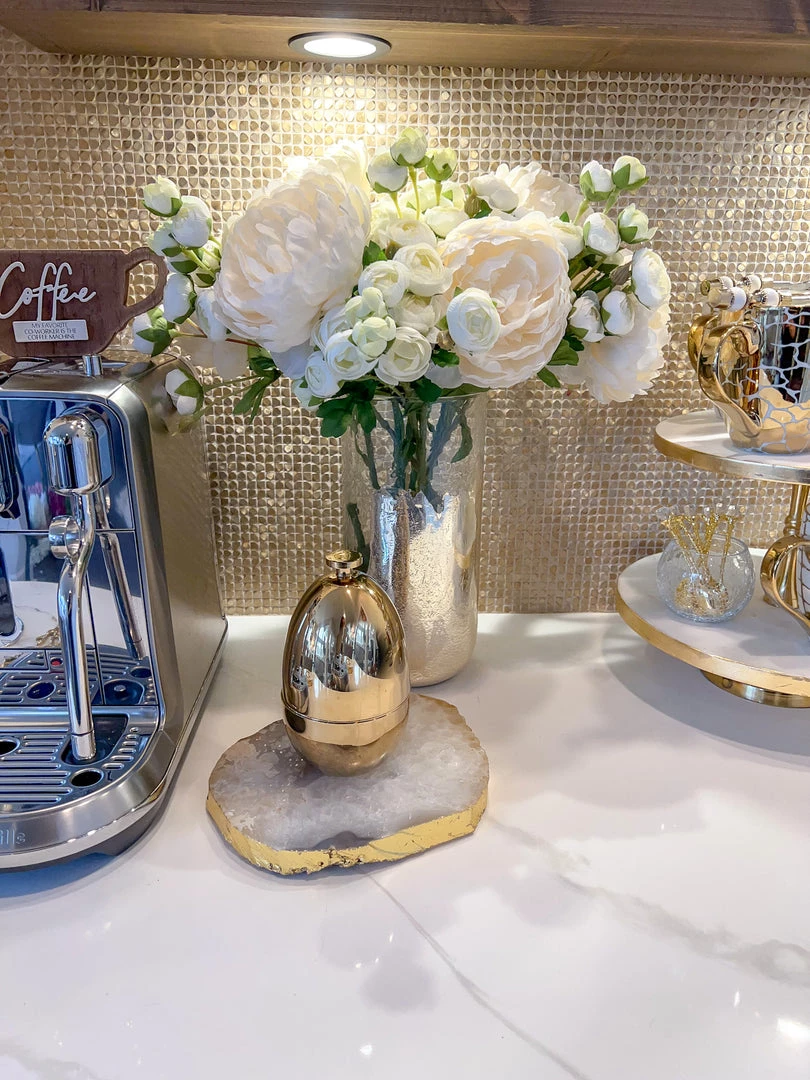 Description: These egg shaped gold shiny utensil holders are sold in 2 styles. One holds hammered tea spoons and one holds hammered mini forks. These are the cutest way to style your utensils on your coffee station or with your snacks.