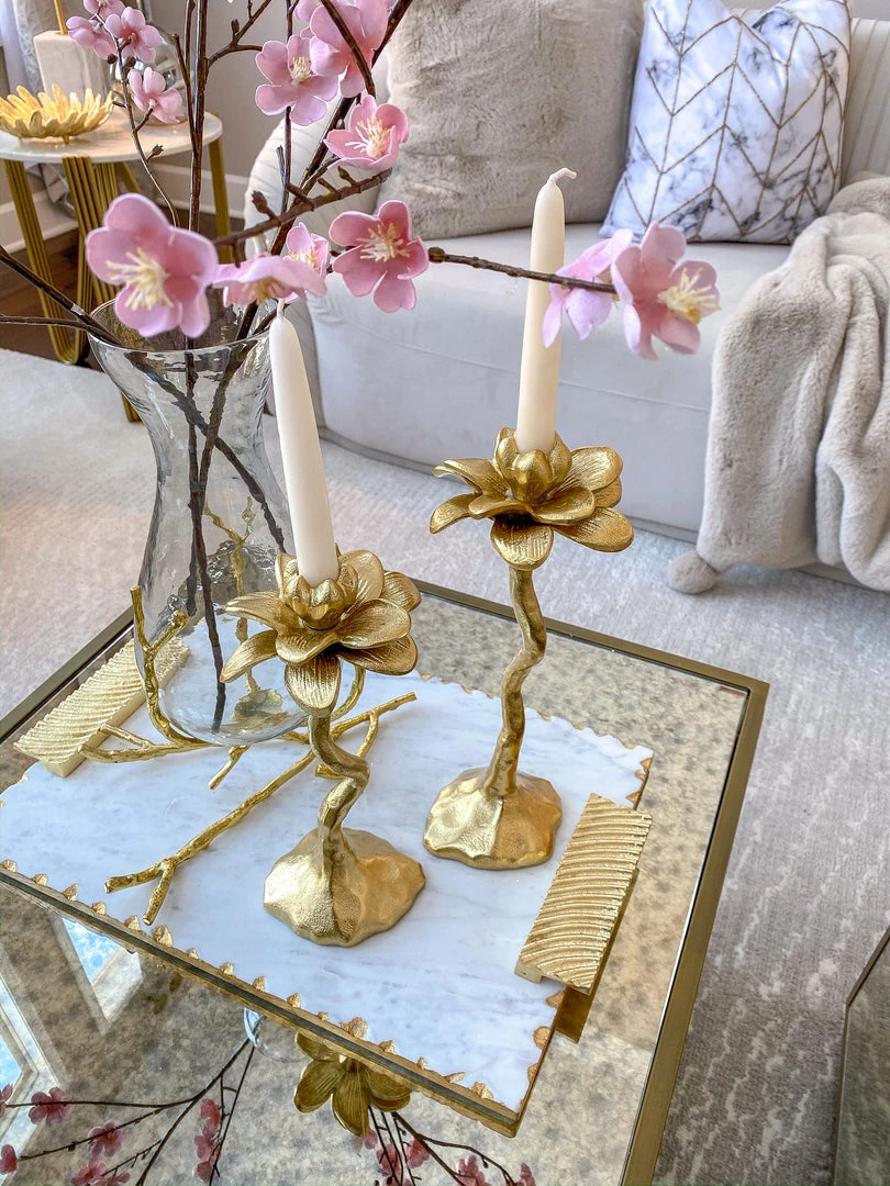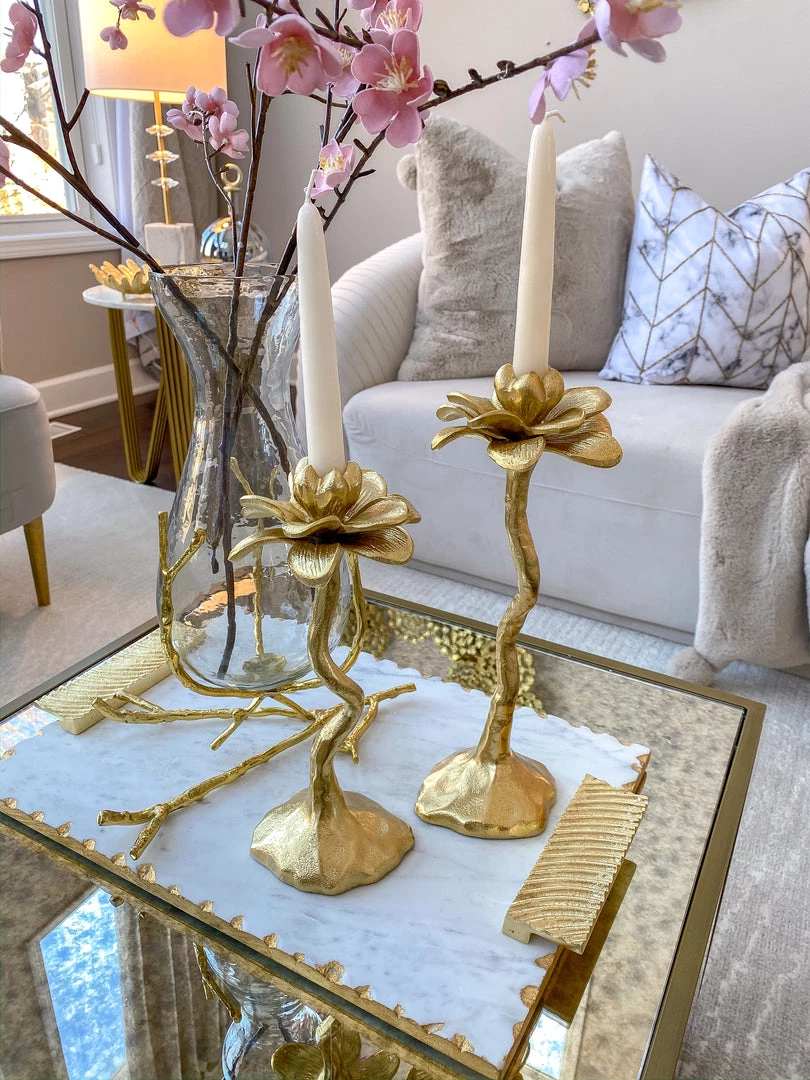 These flower candle sticks are stunning and would look amazing on your mantle or as part of a centerpiece on your dining table!