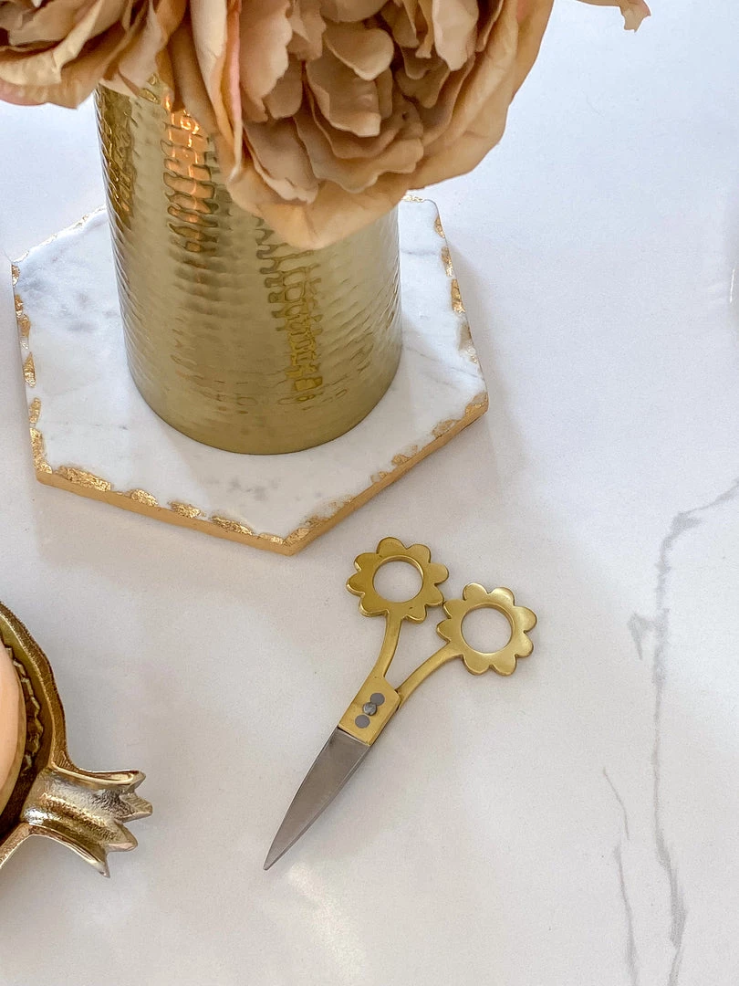 Description: These stylish scissors are too cute! We love the gold floral handles. Cute and functional!