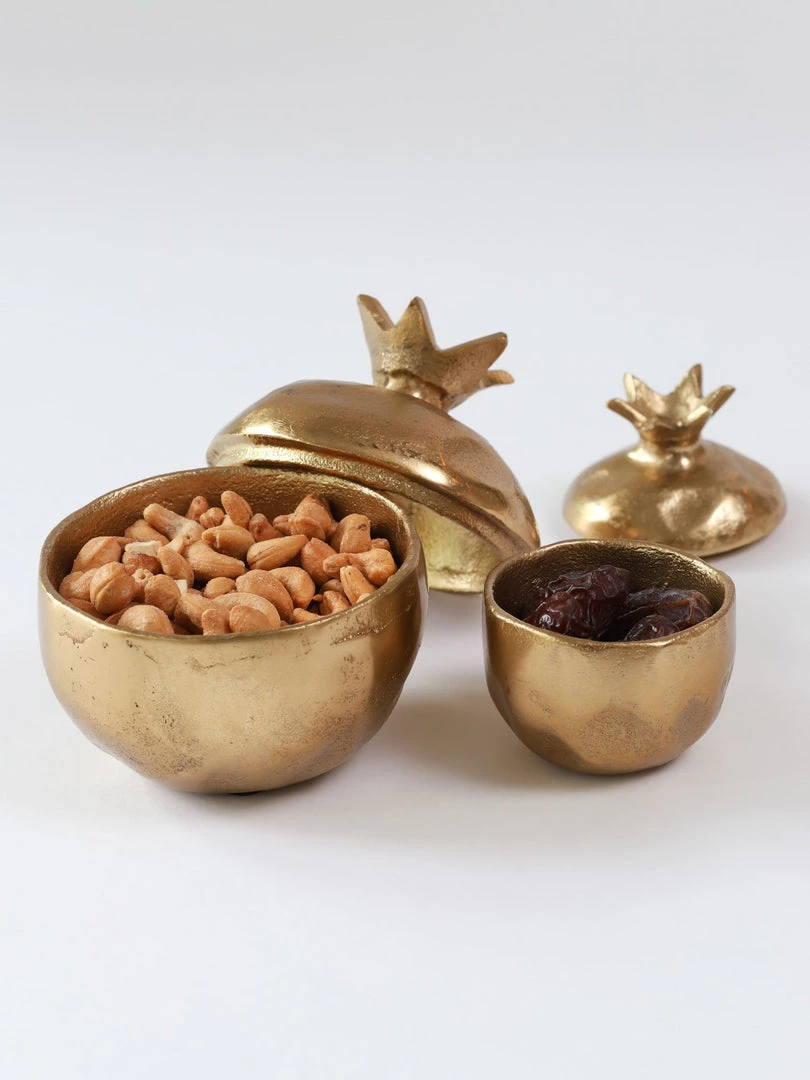 Description: This beautiful golden fruit serving dish is absolutely stunning! We love the silhouette of these piece and it will look perfect on your vignette! Available in 2 sizes.