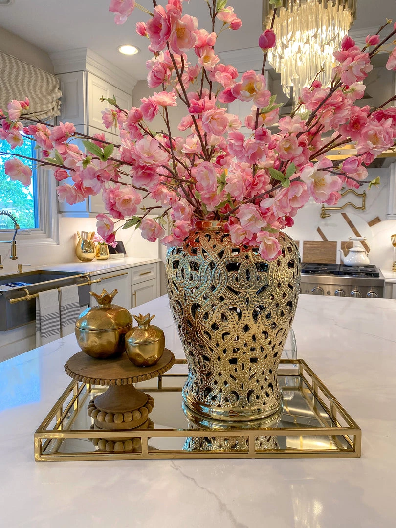 Inspire Me! Home Decor Large Rectangular Marble Tray With Cherry Blossom Details