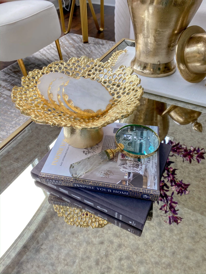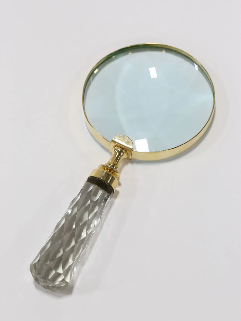 Description: This gold magnifying glass with glass handle adds glamour to your display.