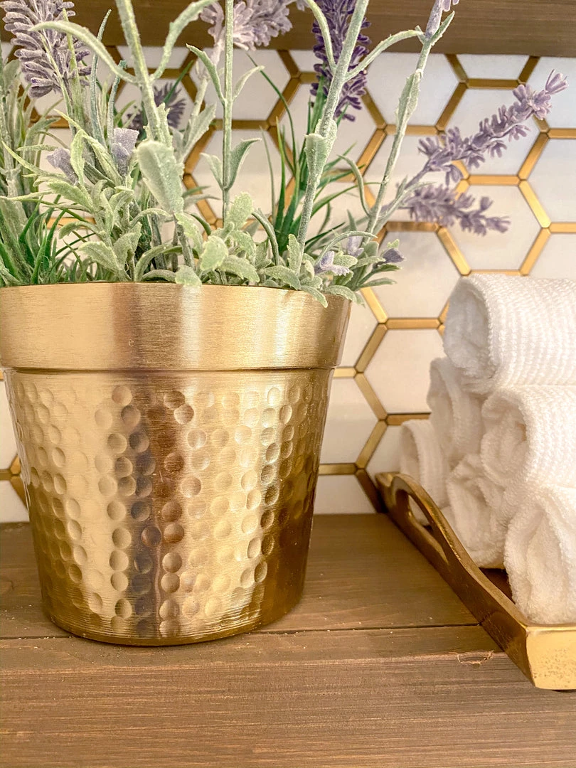 Description: This petite, gold metal pot has a hammered texture for a glamourous home for your plants.