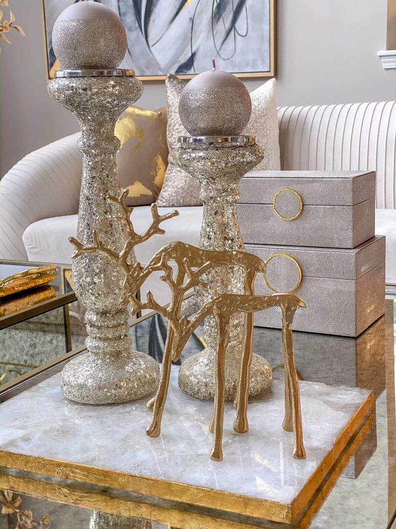 These adorable gold, metal reindeer are glamourous additons to your Holiday decor that you never knew that you needed! This reindeer comes in two different sizes.