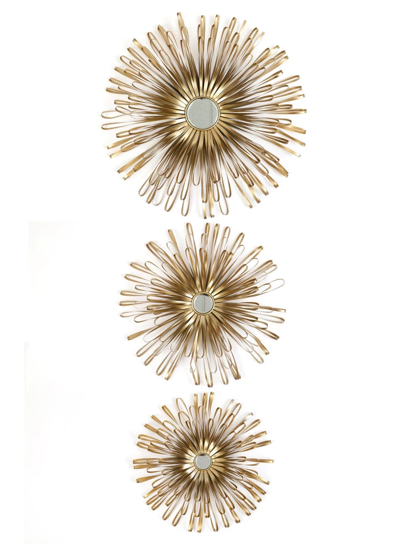 Description: This elegant 3 piece set will add flair with its bright sunburst design framed mirrors which will glisten light into any space.