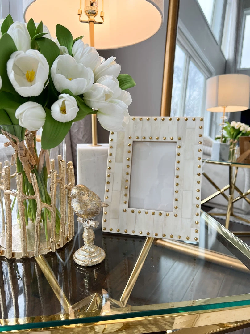 Description: This photo frame fits 4 x 6 photos and has a stunning cream and gold finish.