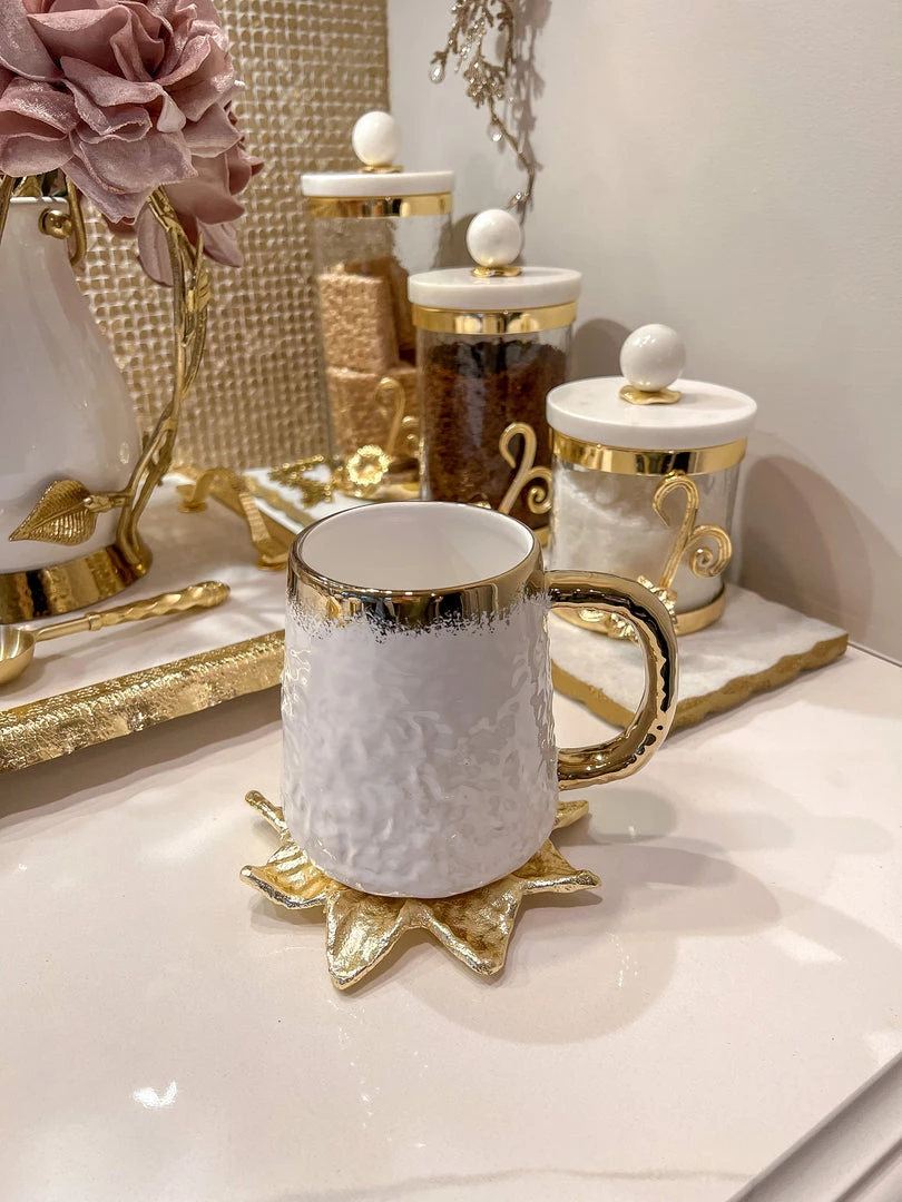 Inspire Me! Home Decor White Ceramic Candle Holder With Gold Elegant Details (2 Sizes)