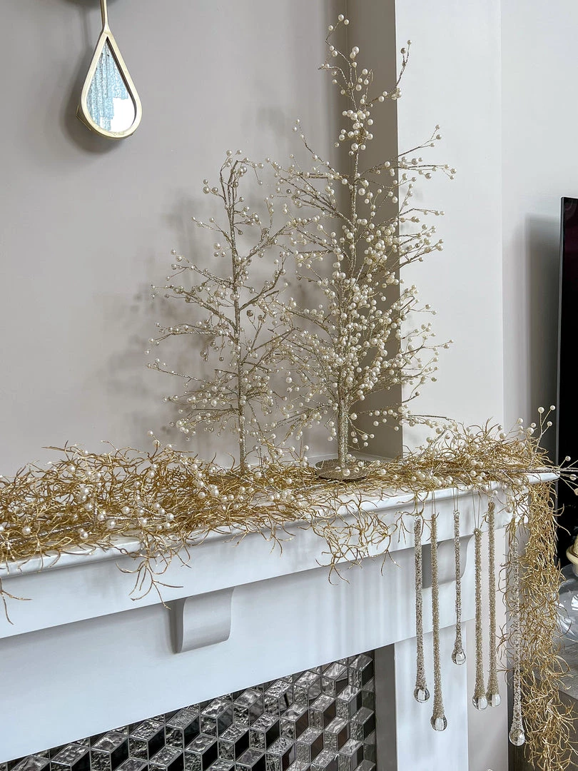 These pearl trees are a stunning way to bring texture to your holiday decor. Perfect to leave up all winter and tie back perfectly to our pearl wreath as well!