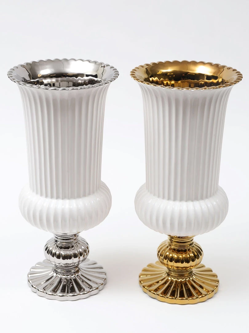 Inspire Me! Home Decor White Ceramic Candle Holder With Gold Elegant Details (2 Sizes)