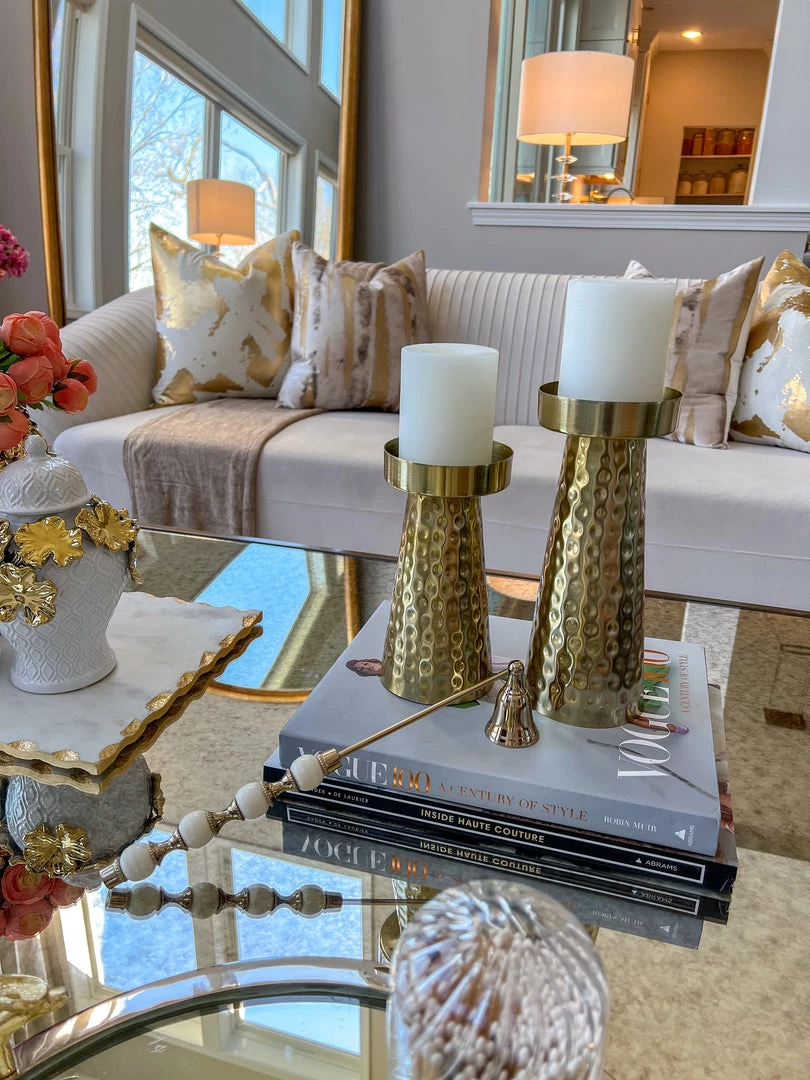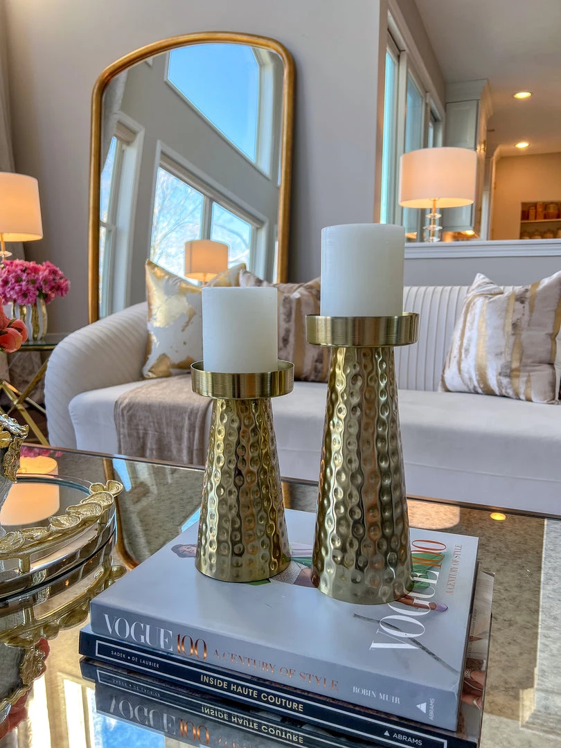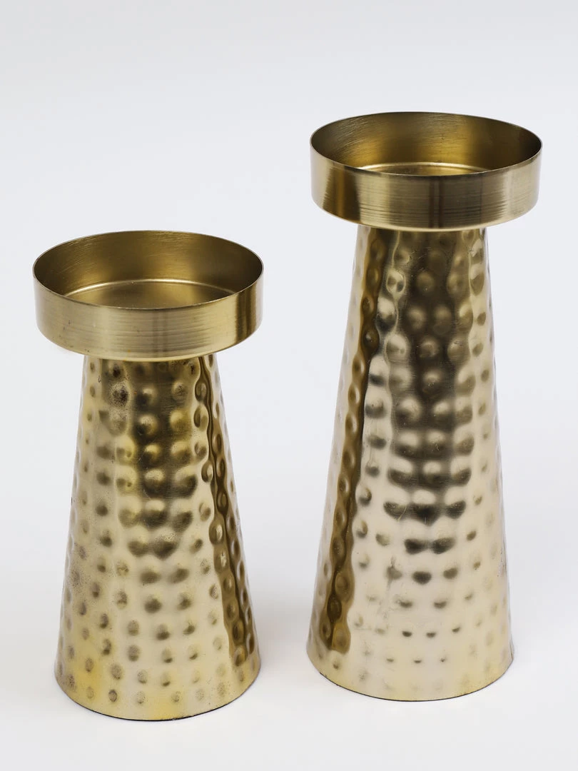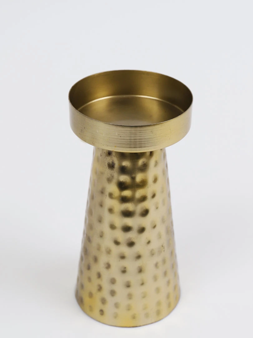 Description: This hammered gold metal candle holder is simply stunning!