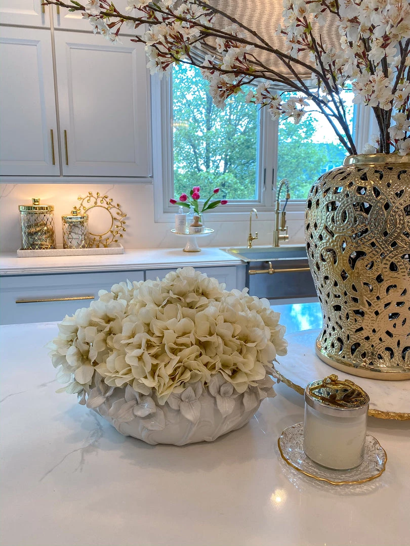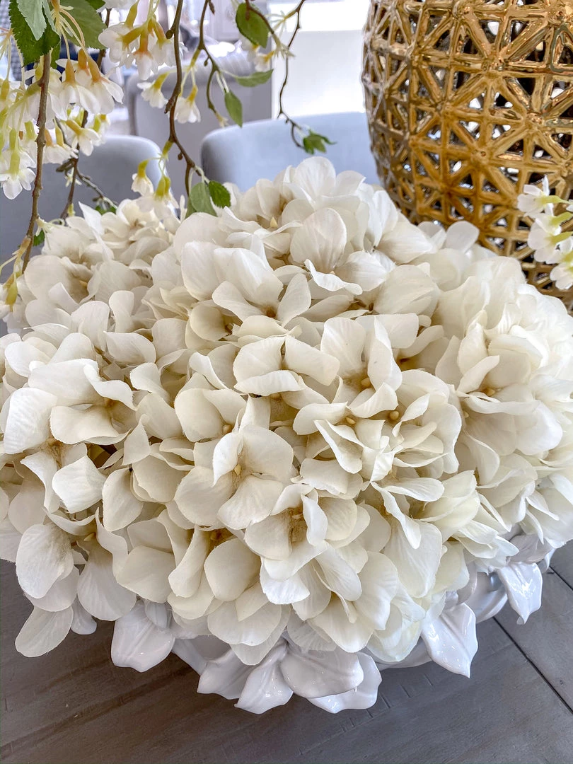 Description: Description: Hydrangeas are a signature element for any floral arrangment! Adding the perfect amount of texture and fullness, this ivory hydrangea stem will elevate your home decor!