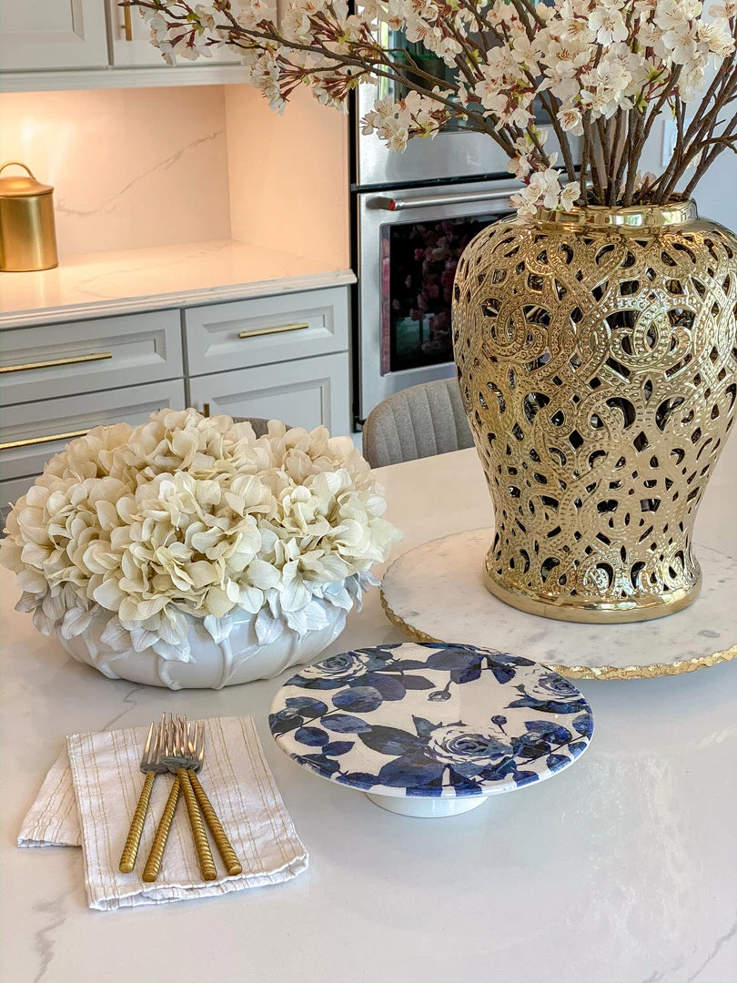 Inspire Me! Home Decor White Ceramic Vase With Stunning Gold Floral Detailed Center
