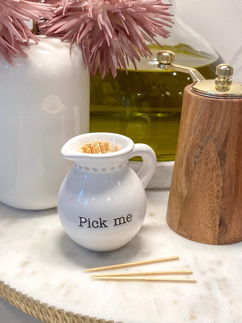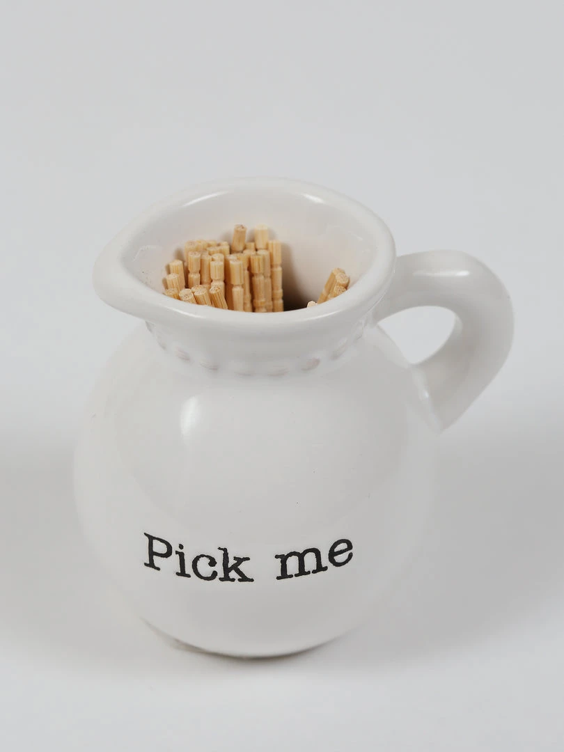 Description: These unique toothpick holders are absolutely adorable! Each item is complete with its own unique phrase and shape that offers a fun and whimsical touch to uyour serving decor. Available in 3 shapes, each sold seperately.