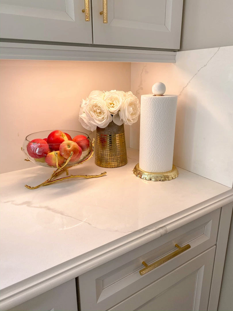 Description: This large glass bowl with a gold twig base, comes with a clear dimpled bowl to add in your favorite fillers. This would make a perfect centerpiece for your dining table or coffee table.
