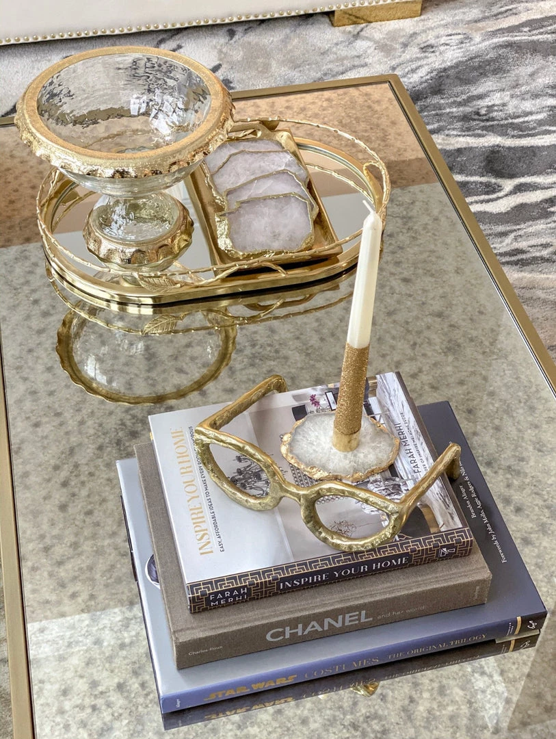 A unique piece, this glass and metal detailed bowl is perfect as a decorative bowl or as serve ware. Either way, wow your guests with this beautiful piece!