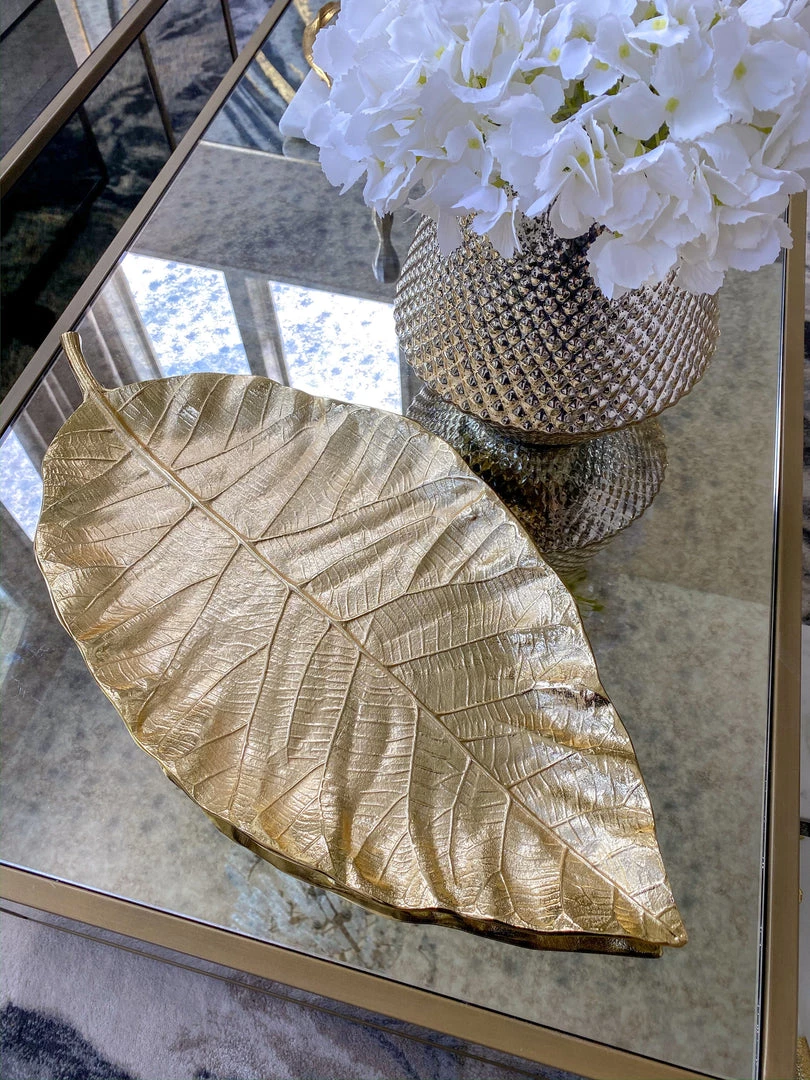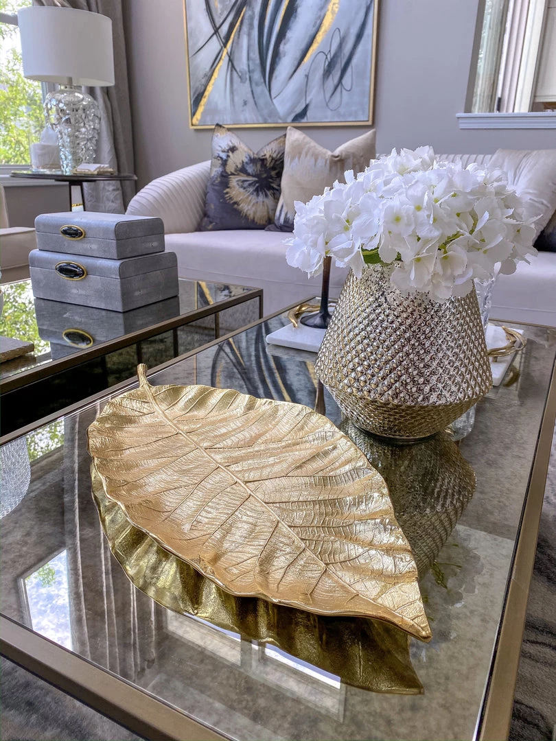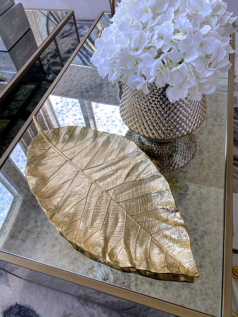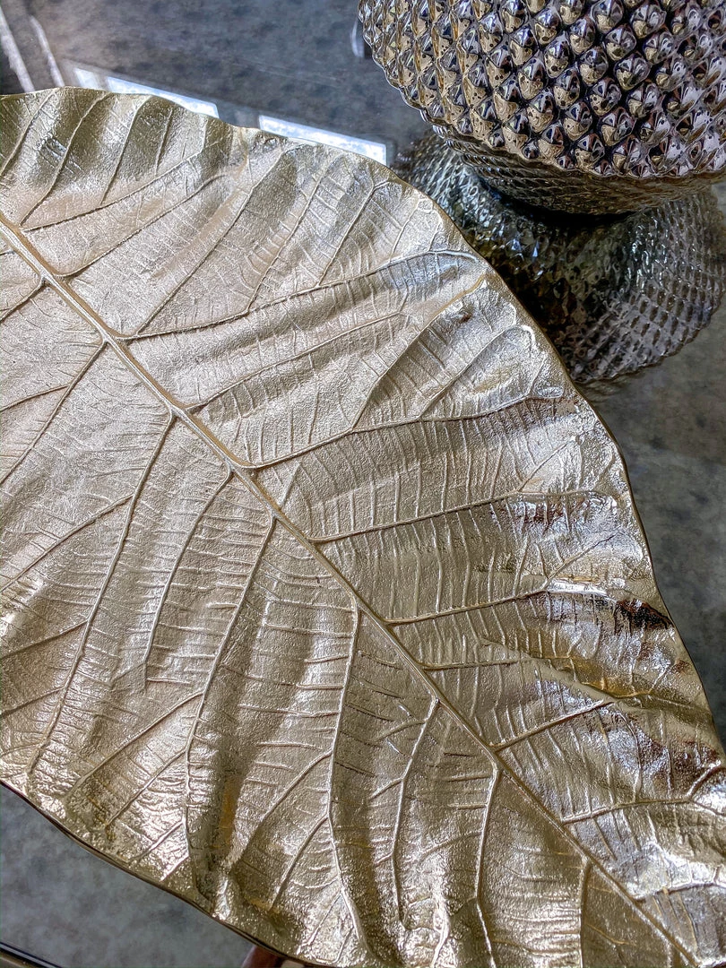 A beautiful gold leaf tray perfect for displaying any of our decor! This is a very substantial piece!