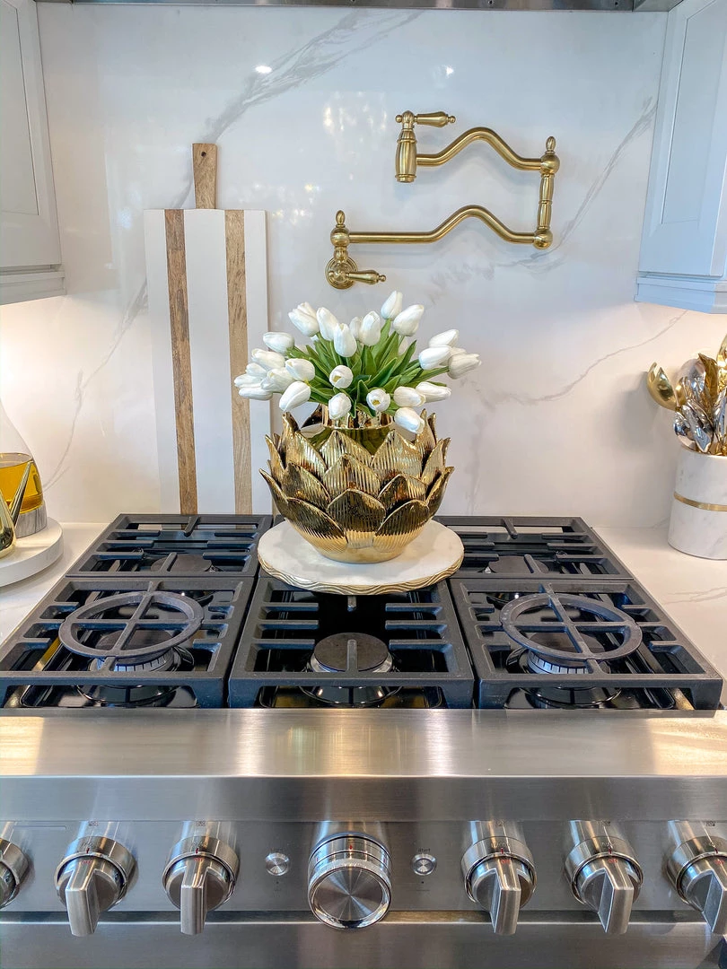 Description: This shiny gold ceramic petal vase is quite significant and perfect to hold your favorite faux or real florals! We love the petal details and the sheen finish.