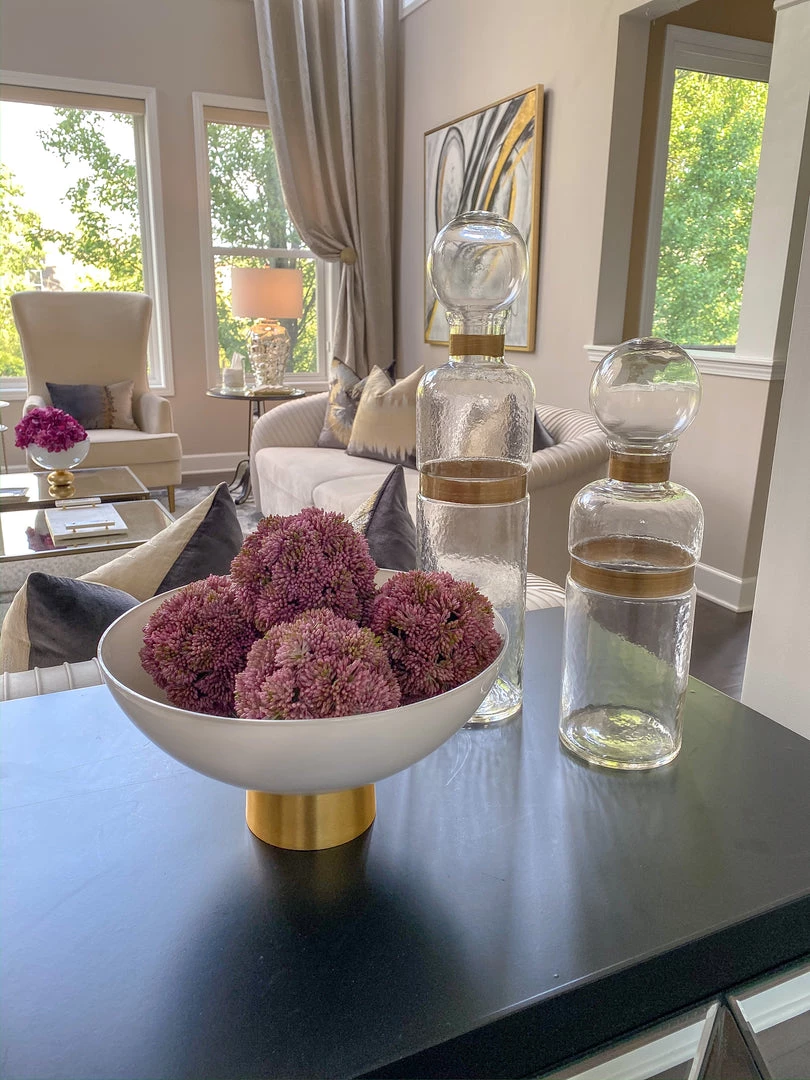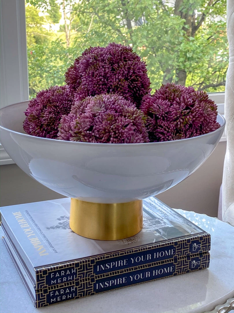 This white glass bowl is a stunning addition to your decor. It ties back to our white glass vase. Use it to style flowers, orbs or display fruits in your kitchen!