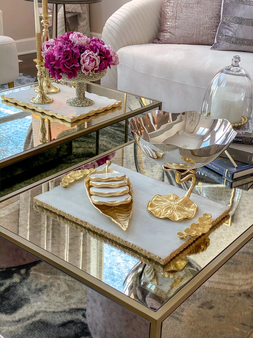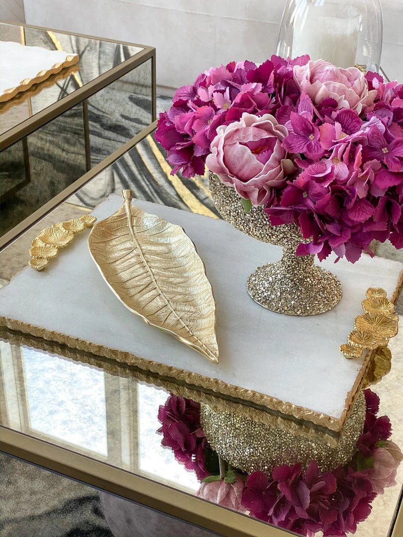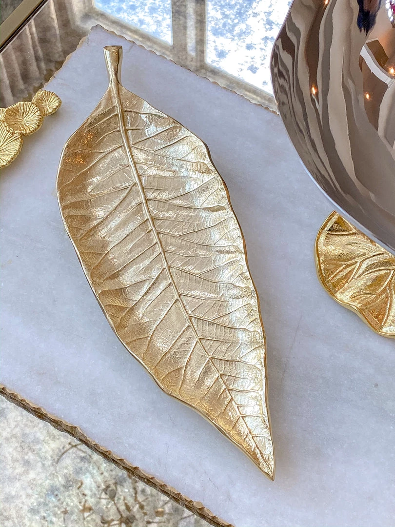 Description: A beautiful gold leaf tray perfect for displaying any of our coasters!